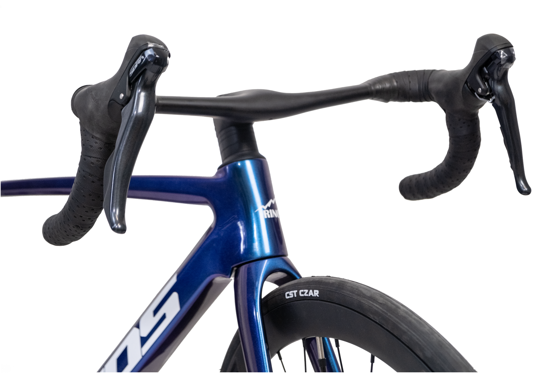 Con un cuadro de carbono conforme UCI, una horquilla y potencia que absorben vibraciones, un manillar y ruedas aerodinámicas y un diseño atractivo, RINOS es la bicicleta correcta para ciclistas conscientes de la calidad.